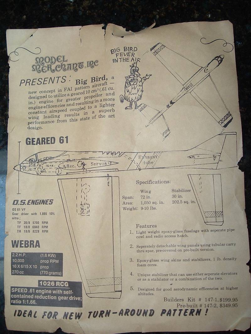 I believe that pattern kit pre-dates the wide spread availability of 4-stroke RC engines. It is actually a .90-.120 2-stroke size model but for some reason, gearing a .60 was the thing to do for some brief period of time back in history...