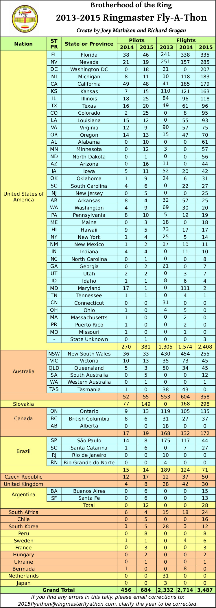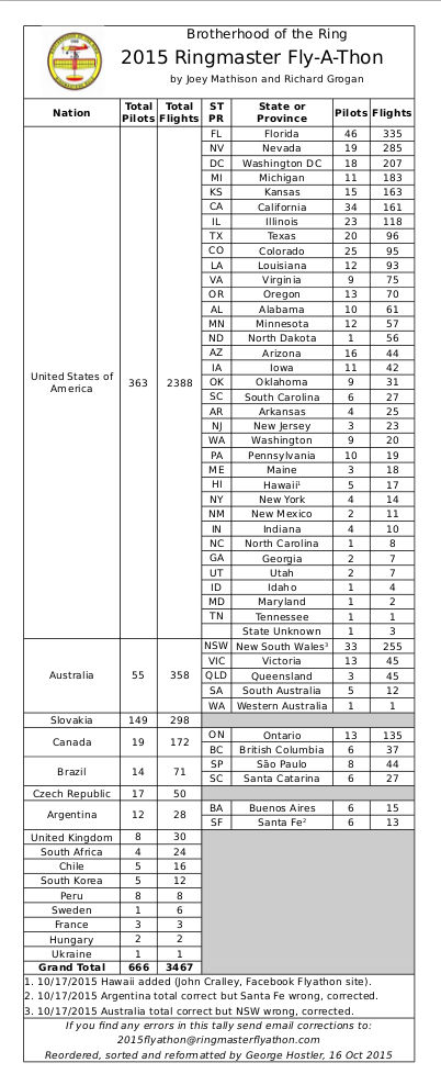 Worldwide Ringmaster Fly-A-Thon Flight Results