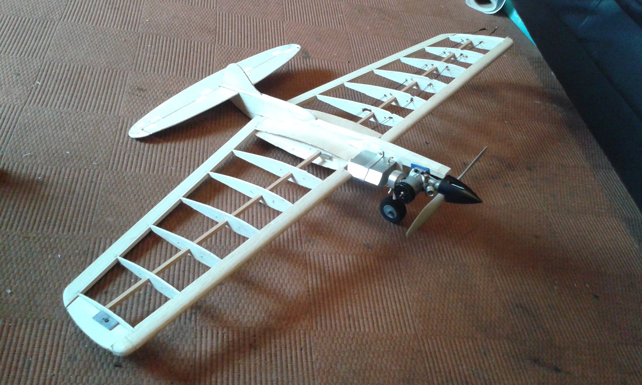 I made the venturi and needle valve assembly on mine. The needle is a 2-56 threaded rod with a taper I just ground on a sanding belt. It was stainless steel, so I could not solder it, so I had to butt nuts to keep the big washer on. There is a control line venturi available though, as a friend has one. I believe the needle assembly from the RC one threads into it. It is above the casting though, not like mine. I can not speak for Annette, but mine goes fairly fast with the thin wing. It kind of mushes around on loops, which is because of the wing being, well, a real estate sign. I have since cut the wing much smaller. It was traced from an F2D combat wing, but now is more like a Lil Satan. Still flies about the same. I have added a pic of the modified muffler, and a header I made for using