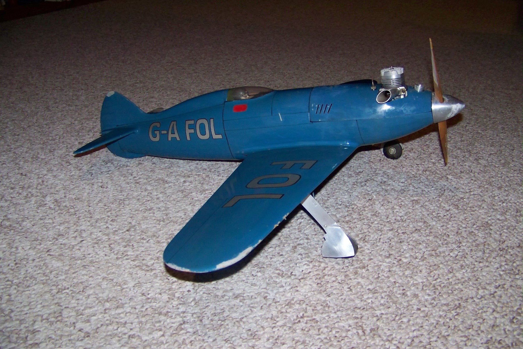 Back in the 90's, I think, several us in the Cincinnati area got involved with"Golden Age Racing." It originated with some guys in New England. 36" span, .40 engines with 11" diameter props. That looks like one of the models built by one of the guys here. Most of them have passed away. Do some research the racing planes from the 30's and you will probably find that plane. I still have two Mew Gulls that I built and a Napier Heston racer built by one of the deceased guys. I suspect that your model was built by the guy who built the Napier Heston.