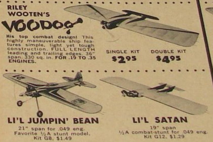 This is entirely true with one exception... They were both kitted by Carl Goldberg Models. And true to the art of advertising, the name Goldberg is remembered most of all and not Riley Wooten though he is clearly given credit for his design in the ad.