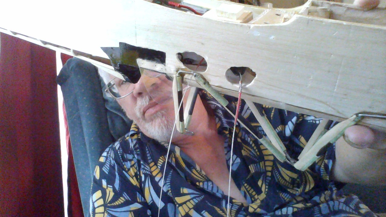 Laid the B.C. with a small post thru it at the pivot point. Played with the full rang of motion so I could see what I was up against. Conclusions #1 I am an IDIOT .................Those are the very steps I should have done when I first started to pencil out this bird .......DUHHHH #2 I can resolve this issue. Just need to open up the lead out exit area a bit, but selectively. Open towards the center of the B.C. and up. Also redo the lead outs. Use smaller brass tubing to swag the cables and make them long enough to exit the sides of the fuse, even when that line is fully in the fuse as the opposite line is pulled. And do a much smother wrap of the folded over lead out wire end. Then I can partially close up the holes, leaving just enough area to play nice. Got to wait till next Wednesday to get the small tubing. So will work on the lead out guide. I did a scrap balsa mock up, so I have some ideal of what is needed. The intent is to be fully adjustable. Line spacing apart Lines spacing fore and aft And line position up and down. I have ideal that I got to play with to get it work and achieve minimum wight and screws. Ken |