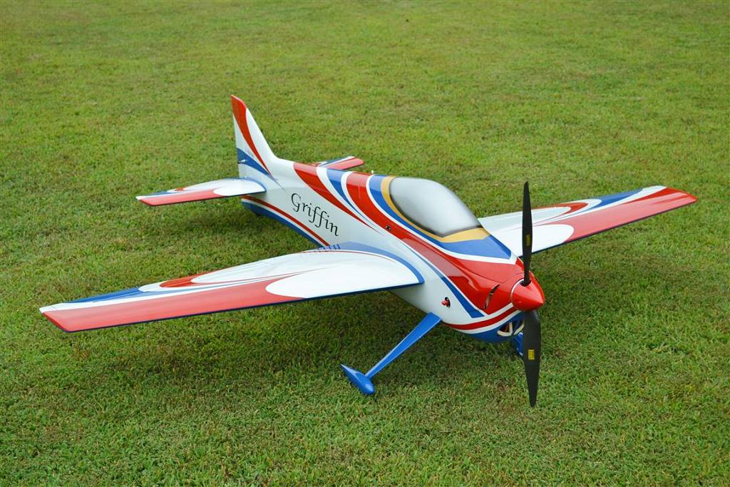 Pics of the new Xtreme Composite Griffin. This plane was developed by Xtreme as a lower price but high quality full composite F3A airplane. The plane is painted in the mold but does not have the dull, flat finish of many painted in the mold airplanes. First flights were today and are confirm that the plane is very solid and presents very well. This is a pre production plane and weighs 8lbs 2oz without motor batteries. Power is Himax 210 F3a motor and Castle ICE 80HV controller. More pics shortly.