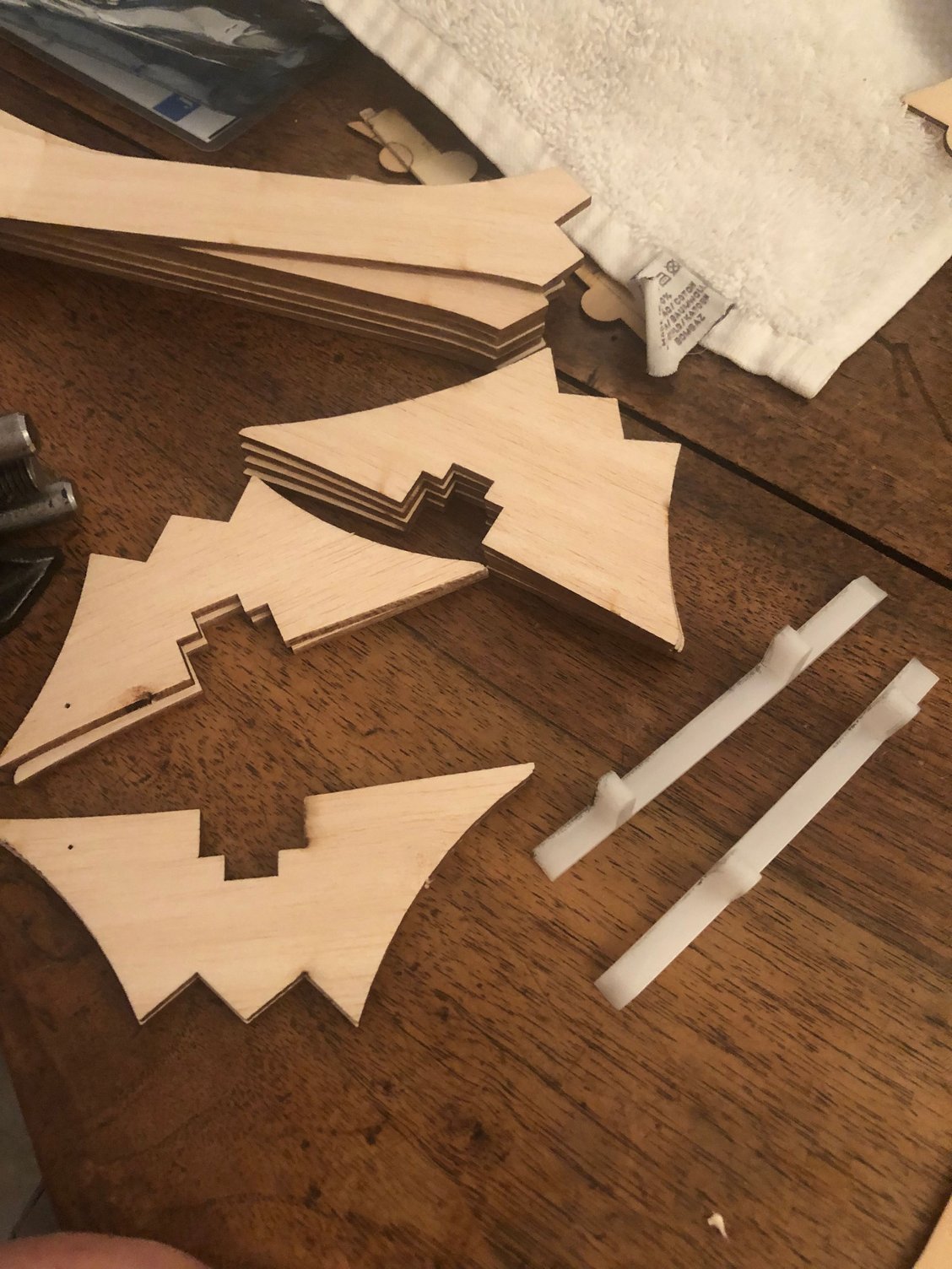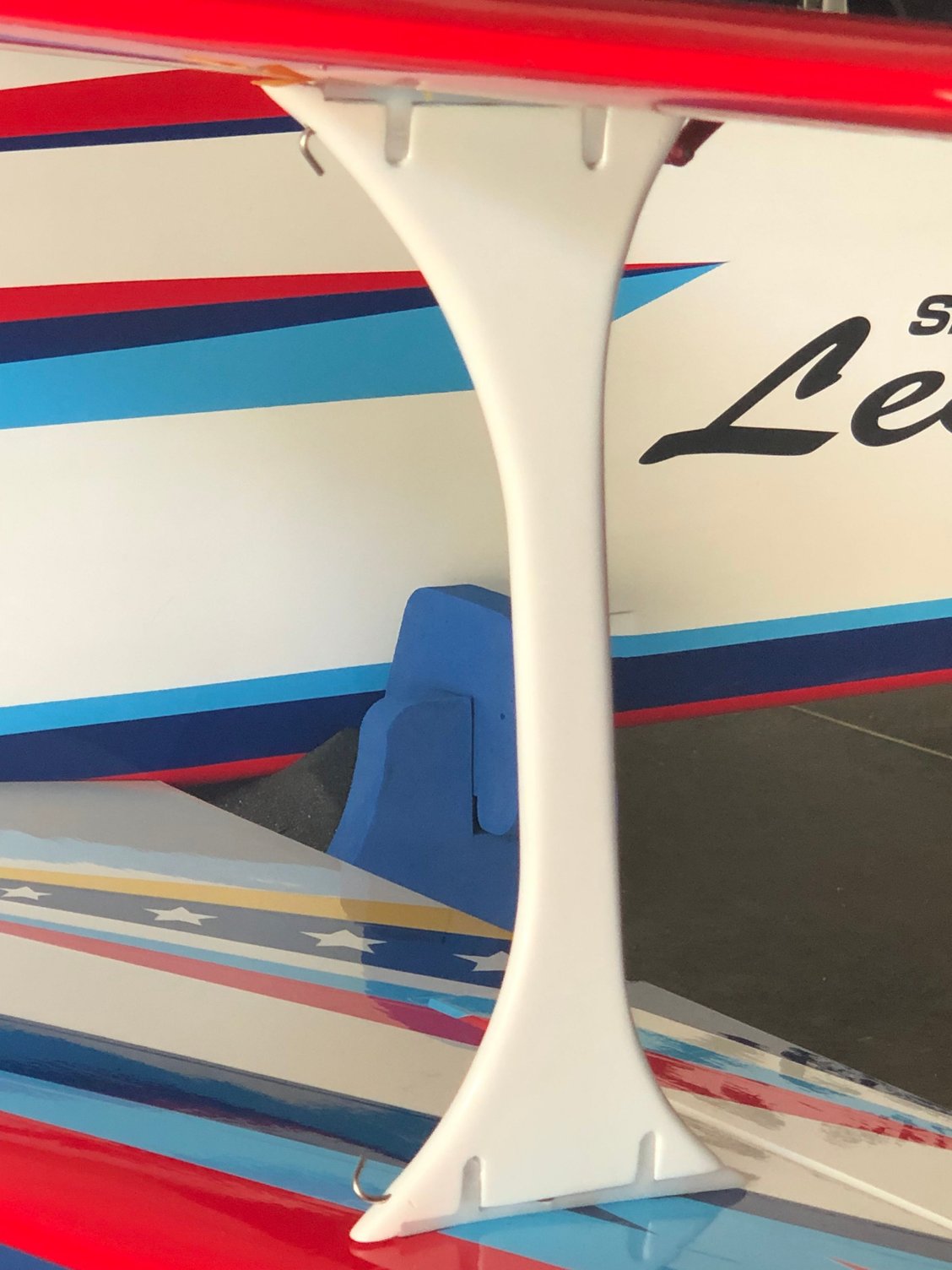 Parts can be rounded in order to have the struts remaining on one wing, the upper one for example, held in place with a small velcro