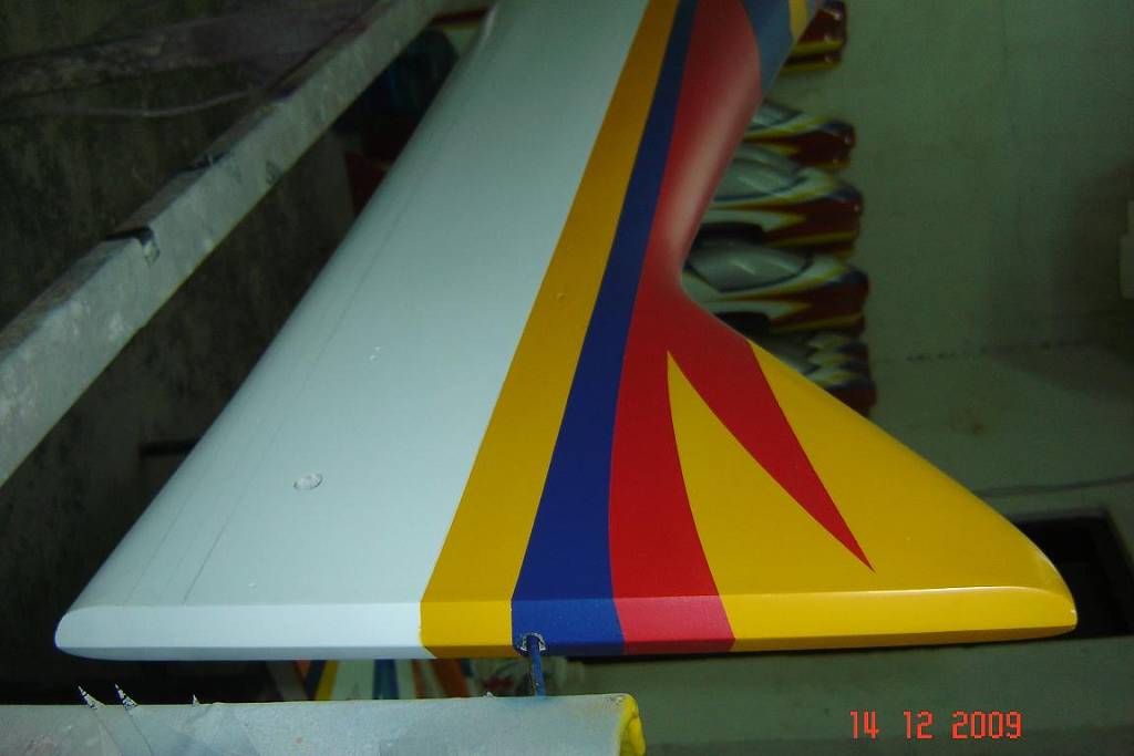 I am really impressed with the all painted models, they are very close to the Chinese counterparts and getting better every day. With the bagged balsa fuse and careful attention to some other details we have been able to reduce the overall weight of all the models by 3 ounces and still counting. What this means is with a Neu motor or Hacker and 5000 Mah TP batteries making the 5 kilos limit shouldn´t to be a problem