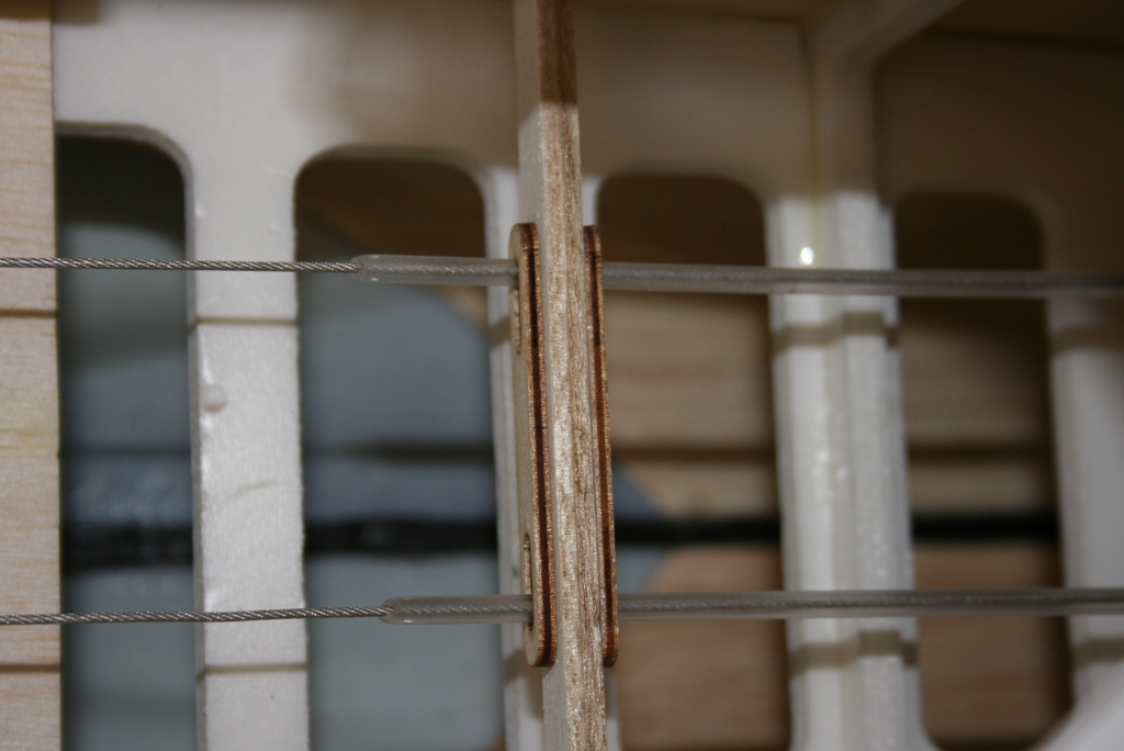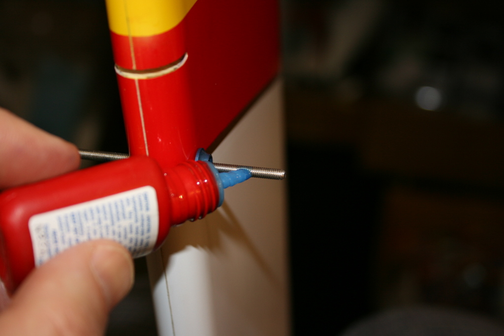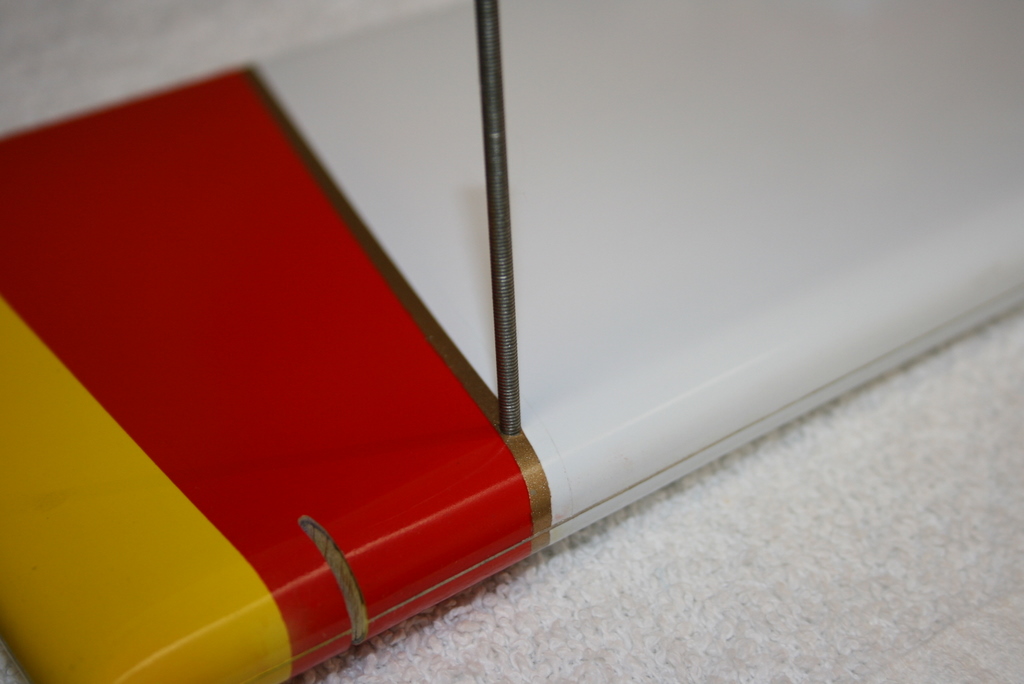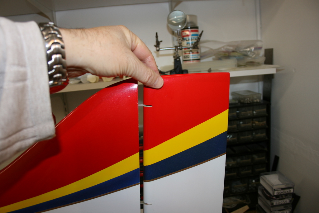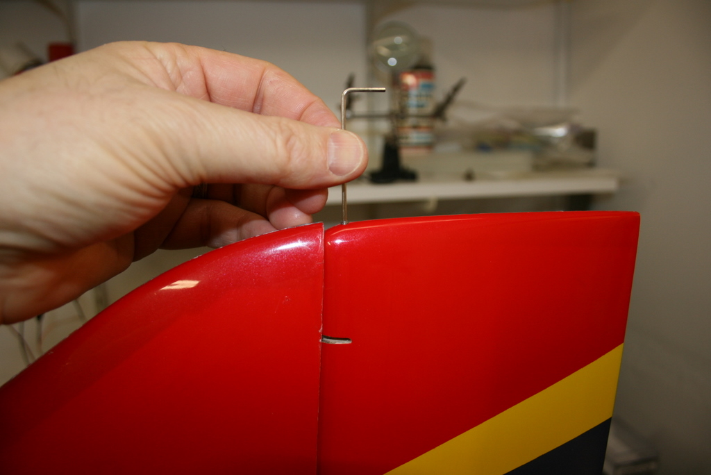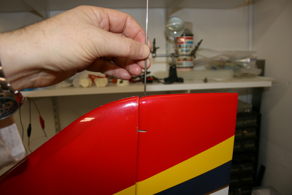 3. Slipping the piano wire down the rudder to connect the hinges to the internal rudder hinges
