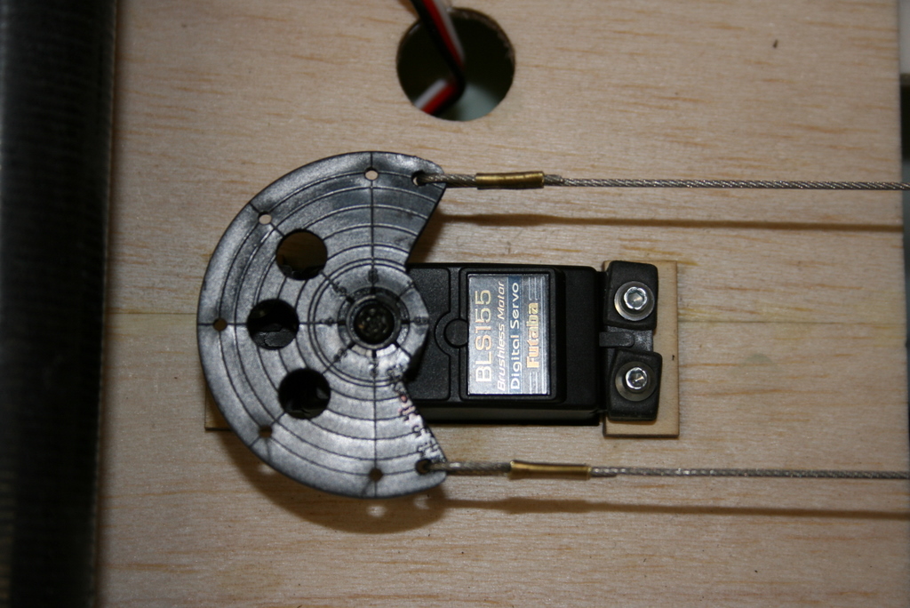 7. Rudder servo wheel and the control rod - you can see the increased length of the rod