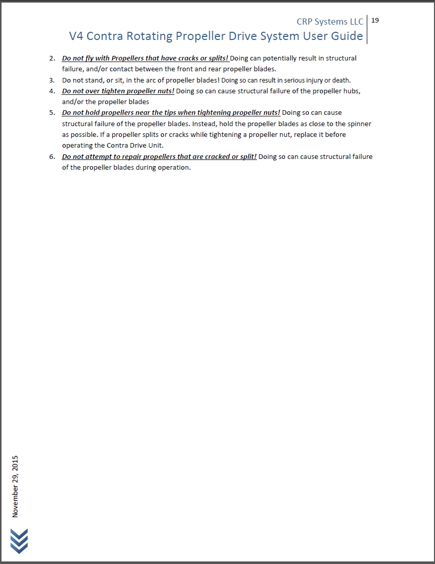 Having never run a contra, I have to say your manual answers all my questions about theory of operation, mounting, use, and maintenance. How is the manufacture-ability of V4 vs V3? Any issues which might affect drive availability or spare parts moving forward?