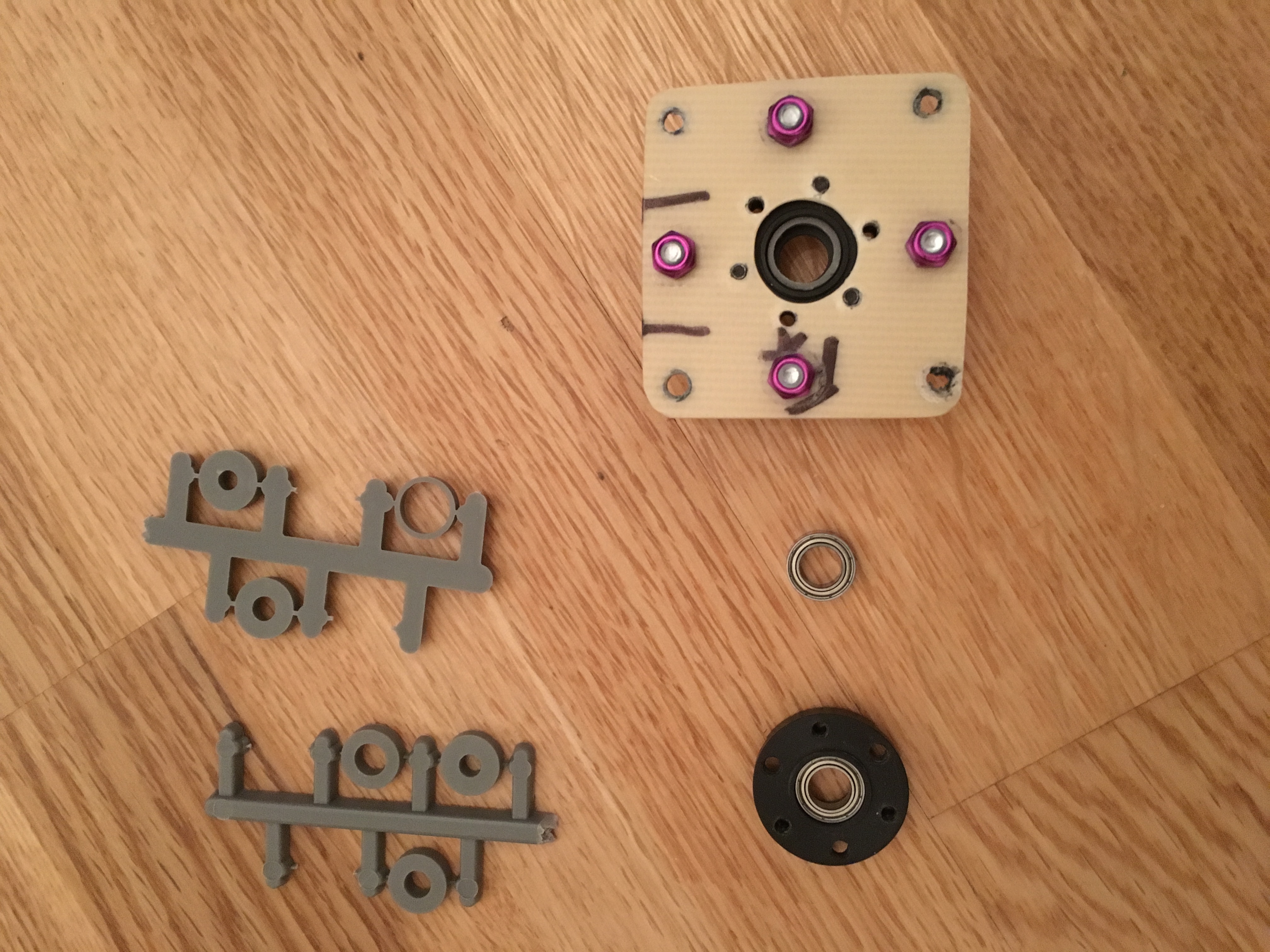 Including 8 rubber dampers, 3 fiber glass plates, the supporting rear bearing with plastic mount the 4 alu standoffs, bolts and alu nuts.