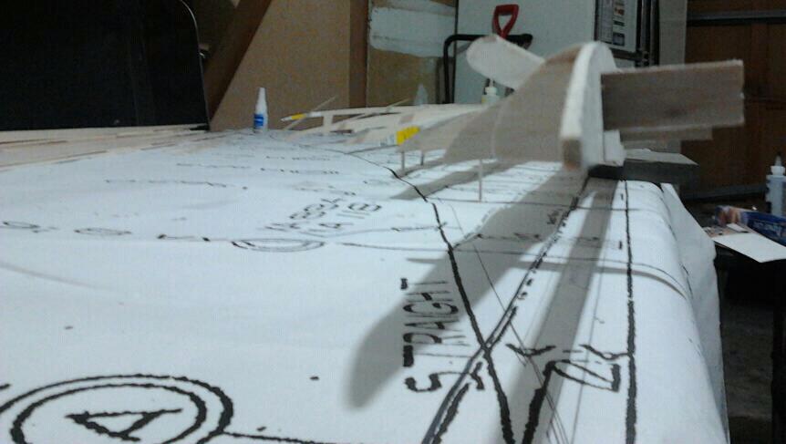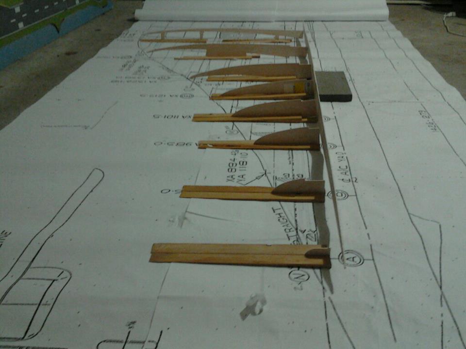 So far looking great but i should have used 1/4" balsa sheet or 1/8" lite ply sheet to make the wing root ribs, 3/32" is just to thin for this wing type!, it's flexing quite a bit even after wing is framed up now.