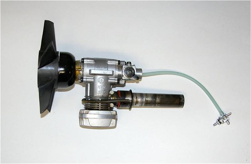 I removed the O.S. .91 engine. It weighed 24oz (1-1/2lbs) with the fan attached. I can't seem to angle the tuned pipe enough to remove it so the fan unit may have to come out first.