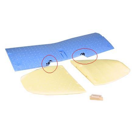 i fixed it with tape, thanks for the help. i worked on the sim alot this week, and put her in the air this morning... huge differece after getting stick time (about 15 hours) on FMS. i flew her for about 8 minutes, but i ran out of juice, and glided in( from about 150' up) it was an awesome experience. the weather was perfect, the plane performed great, and at the end of it all i had NO REPAIRS to do! can't wait untill i go back home sunday to fly her again. right now i'm at a lake playing with my 48" gas boat