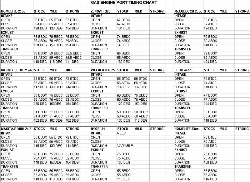 I got the 2 cycle manual but haven't looked into it yet. Noticed that several engines in that chart show the same timing before and after for total port time. Is that just a norm or is it that things work better that way?