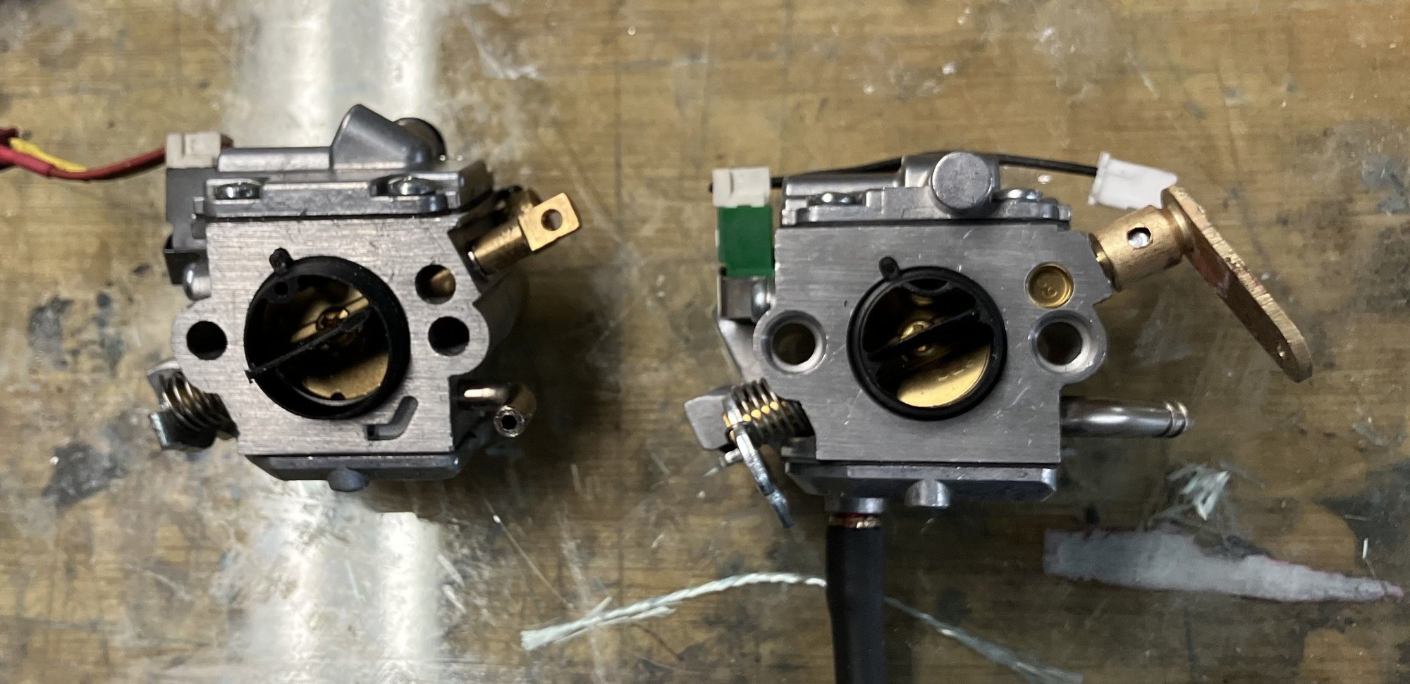 When I compare the slot in the WT 962 carb it is much smaller than either of the slots on the ZAMA. I would estimate the slot area to be about 6X that of the WT962. I would like to have the idle set before completely the final tuning. Going over the gaskets and heat isolators, might find an air leak.