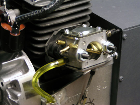 I finally decided to try my electric starter and the engine started, but it wouldn't run. I backed out the needle valves and it still didn't run. I finally got it to run by holding my finger over air intake, choking the engine. I think i have an air leak and that is causing the pump not to work on the carb. I have a stupid question, but since I got the saw in pieces I never saw which tube on the carb is the feed tube and which is the vent tube? Can anyone tell me? Right now I have the feed line hooked to the smaller tube located in the middle of the carb and the vent line to the larger tube that is closer to the top of the carb. Is that correct? Any help is appreciated. Thanks