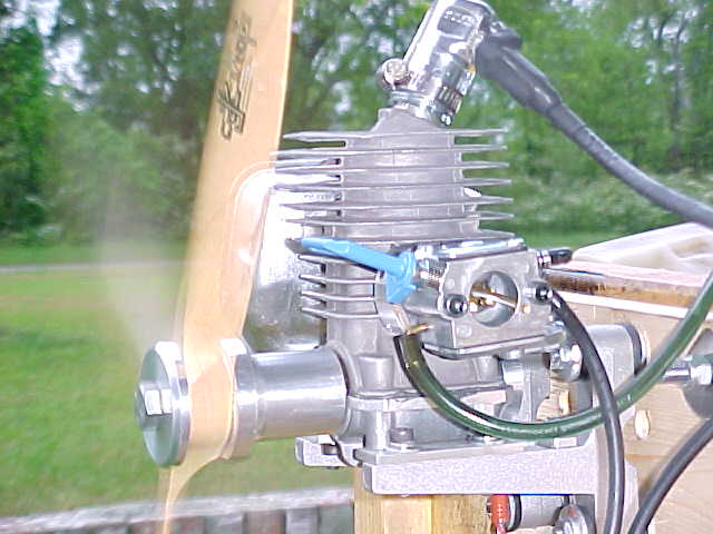About four flips with the choke on to get a pop, then about 4 more flips to get it running. After that, one flip starts. Getting 7650rpm with an APC 16x10 right now but this engine has less than a tank of gas through it so far and I'm expecting a good bit of improvement. Dual rings, excellant compression, beautiful throttle response. Only snag, it's got one of those oval shaped intake ports like on the Poulan 46 so building the carb adapter is a little work (understatement)