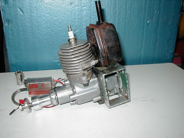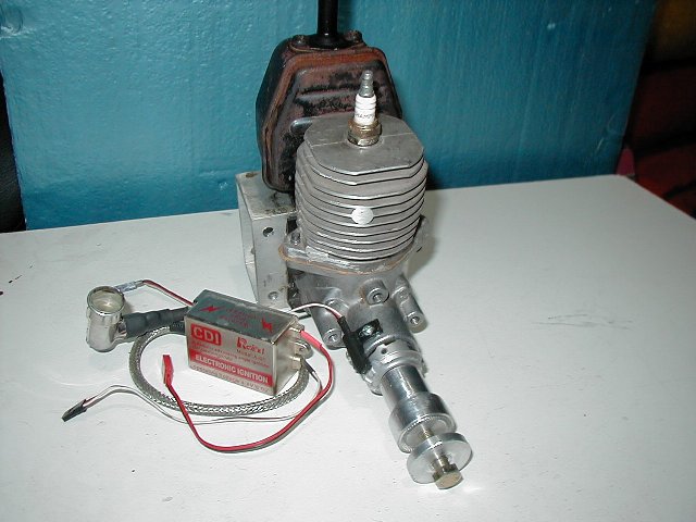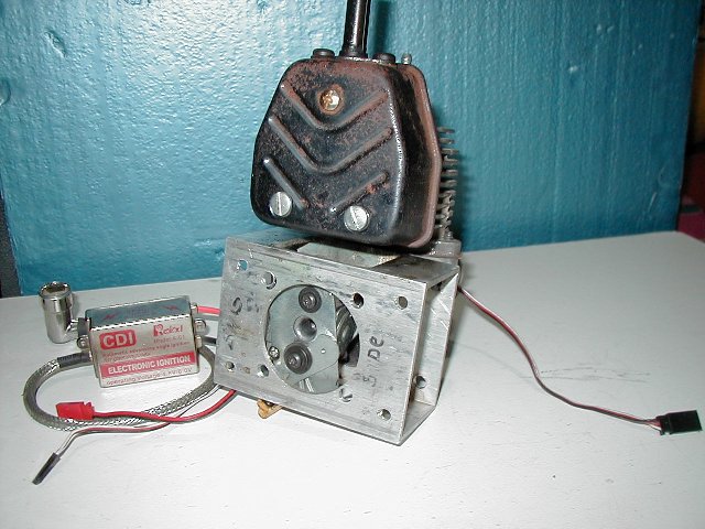 Heres a pic of how we attach rear carbed engines to a firewall.This is a ryobi 31cc.Its a piece of aluminum channell.Cutouts at the top and bottom for access.This one i put a battery cdi on it and rounded the cylinder with my lathe.
