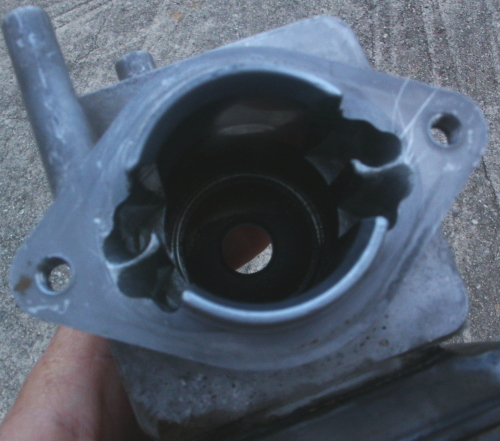 I think this picture speaks volumes. the one on the left is quite visibly smaller. if the end of the reed stop is the same depth or didstance to the rod then the one on the left definatly has more material in the crankcase ==ing less crankcase volume. I know it looks like it wont flow as well but from what your numbers indicate the not as good flow is offset by a large gain in less crankcase volume. also notice the relief cut in the backplate where it clearances the cylinder. the one on the right is cut at an angle and would seem to me to have lees material to take up crankcase volume. this is just my opinion and i would really like one of these motors for testing.