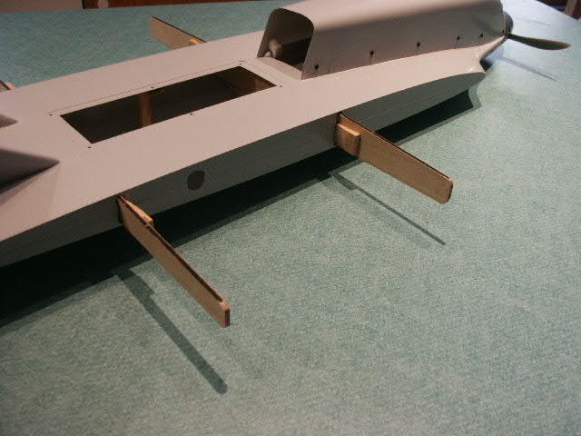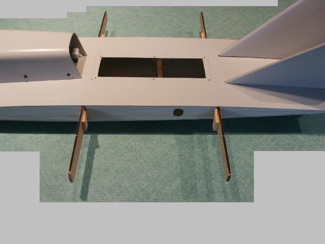 Screw holes in the botton of the fuse were opened up to bout 1/2" diamater and cardboard tubes installed. This will keep dirt out of the fuse.