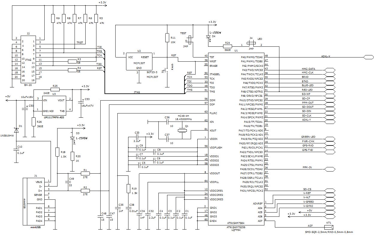The autopilot is made on the basis of a debug board. The circuit consists of a debug board and a periphery:
