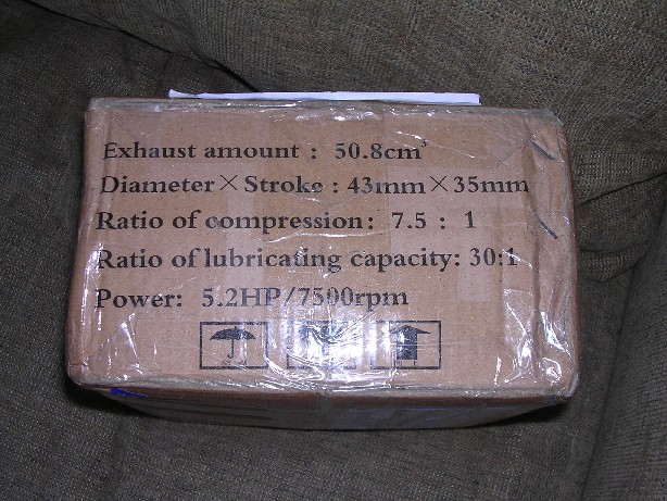 Shipping was pretty slow, and packing was moderate (see pictures). I weighed the engine alone and it was right at 2lb 15.75oz (3lb). The muffler, ignition, and mount put it right at 3.5 lbs. I will post the exact weights a little later.
