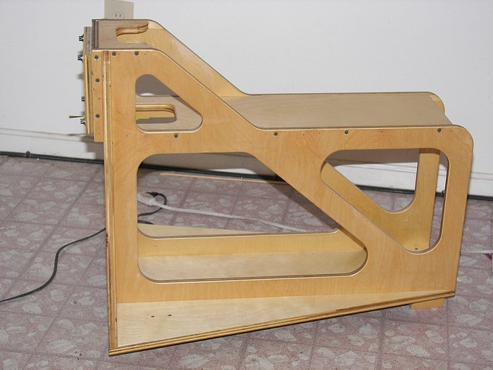 I like the second one, very nice. What wood did you use? It looks like a hardwood of some sort. I was thinking of something similar, but not such nice materials. I figure good old spruce 2x4's and so on should do the job for me. I assume you just add weight as required to stop it from moving around? I like the counter height top, I am old enough to not appreciate being bent over tinkering on toys anymore.