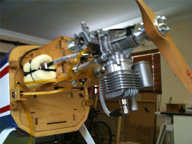 from the side of the engine to the rear of the engine. (It should have been put there by DLE!!!) which apparently eliminates the tilt&die