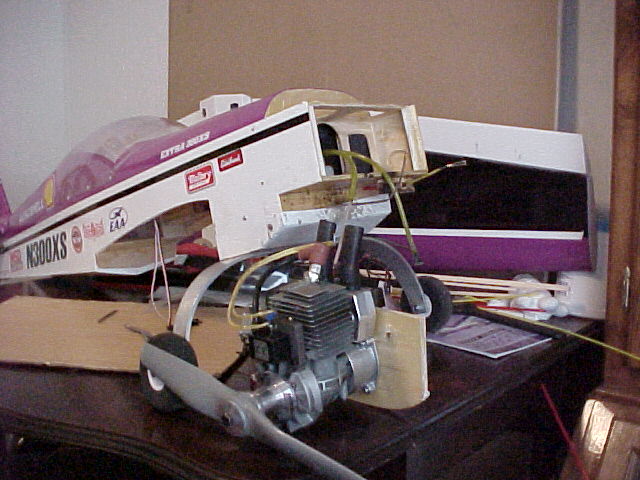 Before, the plane had a OS 1.60 FX with 1 Lb. of lead weights in front. Now, with the 50cc, I have the same weight as before.