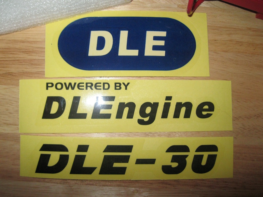 Update to the Decal post I made. I opened the manual today and some stickers fell out. They are different though. I like the old one better. There is one ugly blue oval sticker that just says DLE. The other two are kinda cool. One says "powered by DLE" and the ther says "DLE-30".  We'll see what they are currently doing with the DLE20 as far as stickers. Ill probably be ordering one next week.