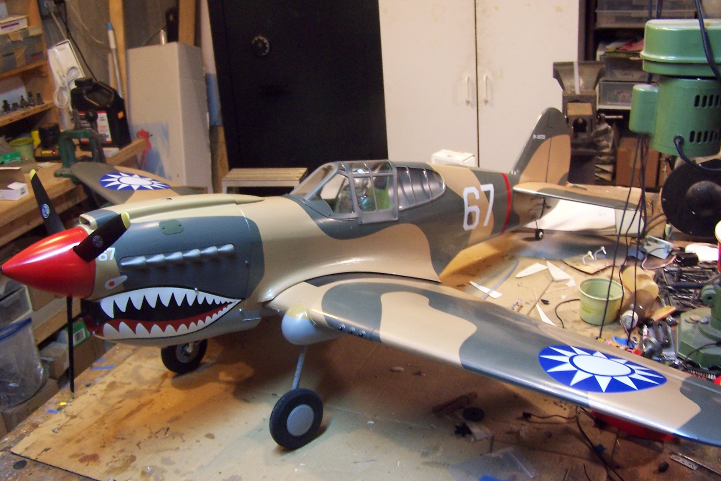 The Corsair is a Koyosho ARF, 71" wingspan. DLE 20 with compact pitts muffler from J-Tec. Turns about 7,100 rpm. The Tony (KI-61) is a Flite Models ARF, 71" wingspan.Carb cooling was a real problem but finally got it sorted out. Took some careful baffling, air ducts and cowl flap. The plane flies great but I believe no longer available. From Hobby King. The P-40 is Top Flite 60 size ARF. Unfortunately no long available. The plane flies good with no bad problems. This DLE 20 has a "Bowman Ring" (he is now retired). and Bowman treatment re the reed valves. This involves honing the surface of the reed valve block to get a better seal. The engine starts easy, idles good and runs great. I think I'm getting about 7,500 rpm. This on also has a compact pitts muffler.