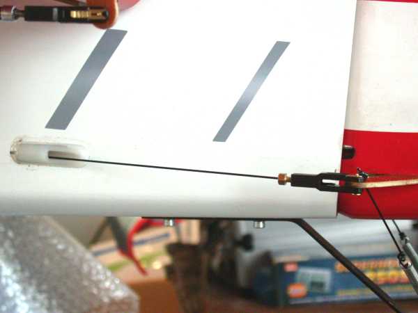 I've put one Hitec 5945mg on rudder and one on the elevator tonight. A puzzling thing happened just after I hooked up the elevator (kevlar pull pull). I thought I'd put my finger under the elevator then push down on the elevator control on transmitter. In other words I was going to let the elevator control effectively lift up the back of the plane by pushing against my finger.