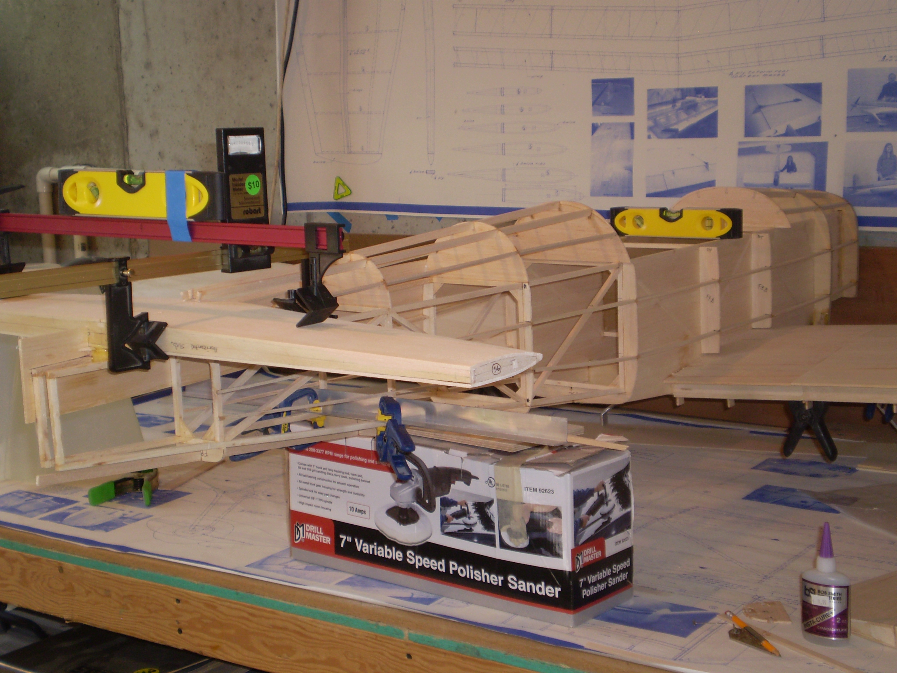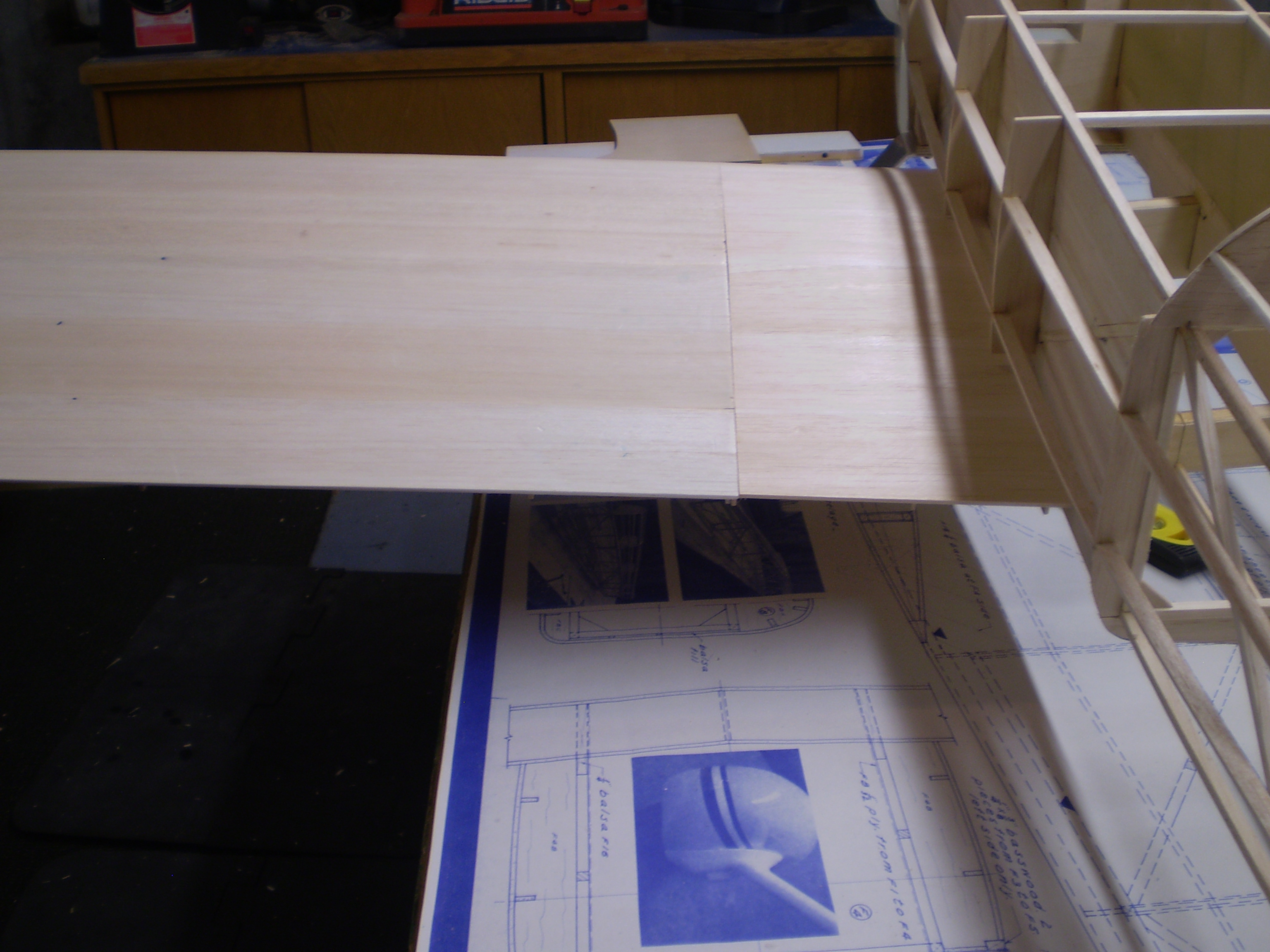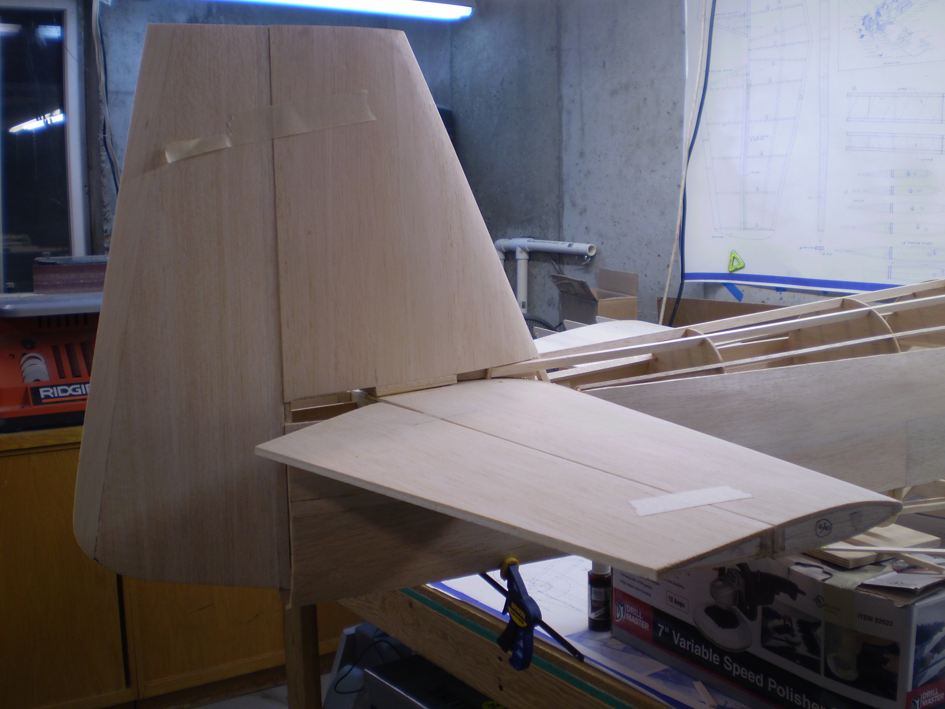 I have been working on filling the center section and fitting the main wings. I was able to complete the tail section and start sheeting the fuselage. I received my canopy and wheel pants this week and plan on building the canopy area in the next little while.
