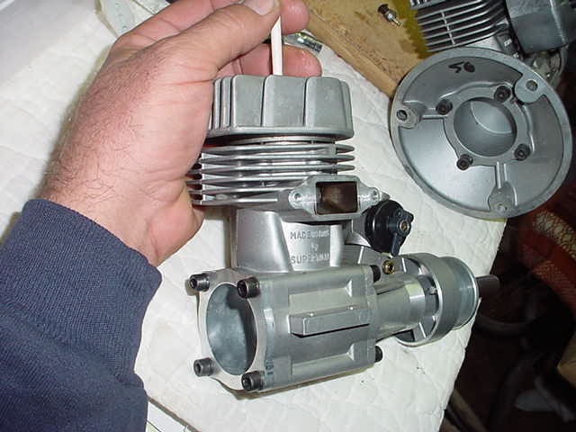 Flyboy Dave:Now why do you suppose Super-Tiger did that ? After all these years of trying to keep ahead of their carbs. they did this! I was told of this trick by the fliers in Minneapolis. They swore by it. Sure don`t look like enough difference in two webs to help. Sometimes I think they are pulling my leg,not sure of people that eat that Norwegian fish.I still check my props ,mark heavy blade and put it 180 degrees from piston at top dead center. Works for me! big max 1935