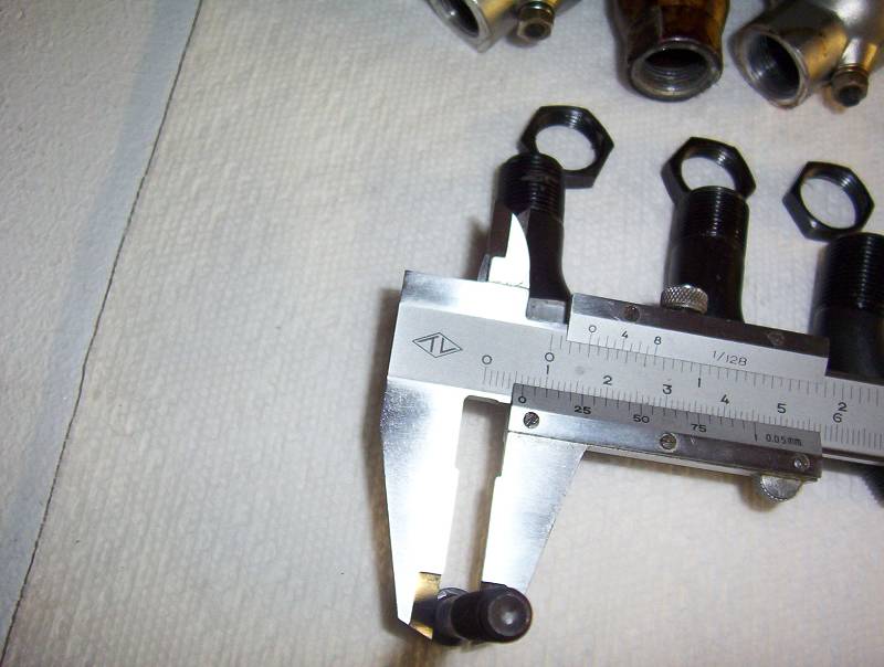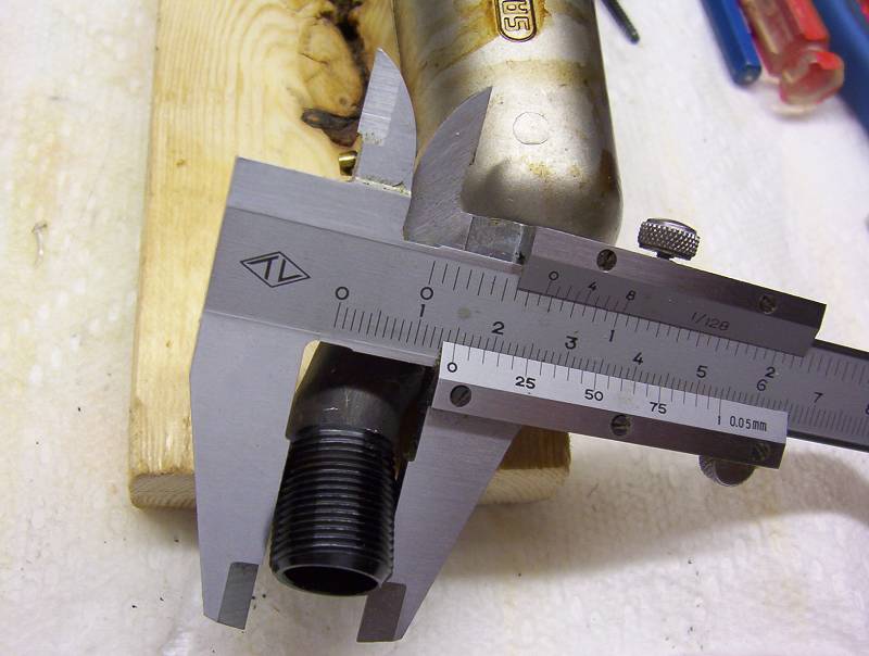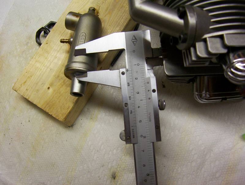 Bill, the first picture (in the above post) is the ID of the 2.20 exhaust port. Interestingly the Saito 1.50 exhaust pipe will slide right into the 2.20 port but is larger than the 1.25 port. The first picture is the measurement of my 1.50 exhaust threads, the middle picture is the 1.25, 1.50 and 2.20 exhaust pipes with their respective nuts, last, I measured a 1/4 inch bolt to make sure my caliper is right on. When did they change the 1.50 to 16mm, Thanks