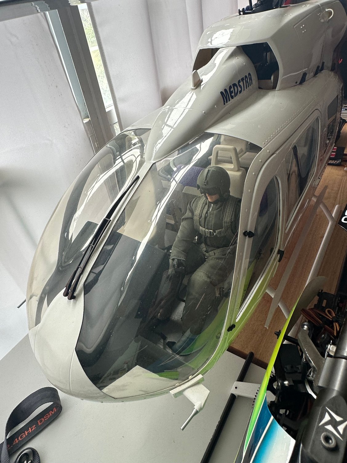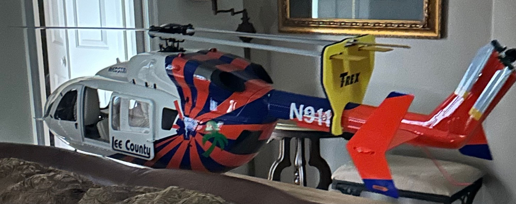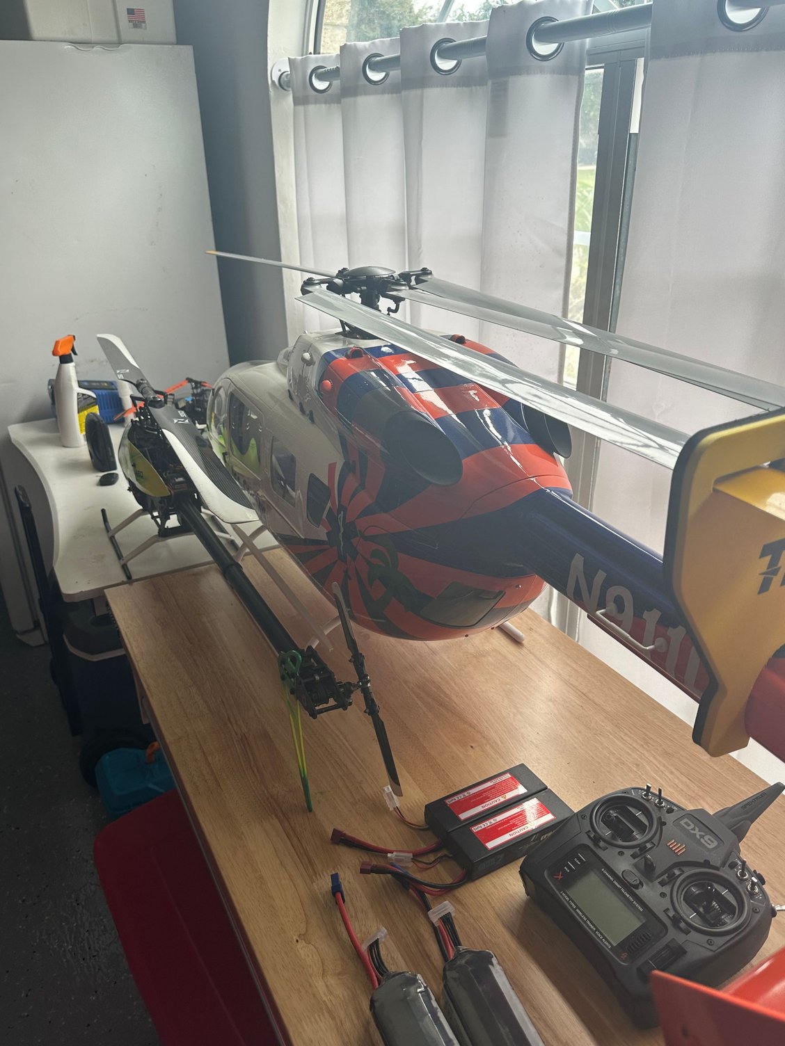 ROBAN 800 size super scale EC 145 lee county ready to fly with spectrum Flybarlesss flight controller. Scorpion 450 KV motor. MKS helicopter servo three for the cyclic and MKS HBL980 servo for tail rotor . Excellent condition with all the batteries for flight.