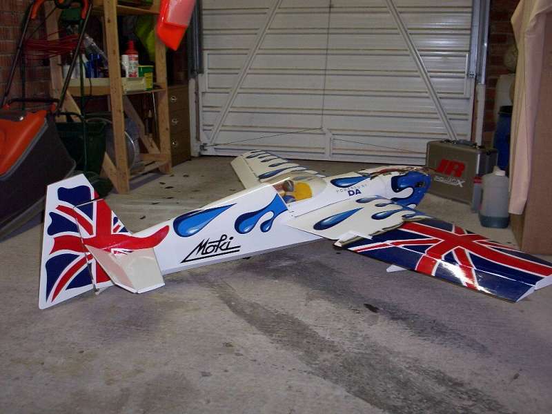 These planes fly well if they are set up correctly. If you take your time then you'll enjoy the plane, if not you'll be taking home a bag of bits.I had one (sold it didn't crash it) with a moki 180 (superb engine) and an internal tuned pipe inside the fus. Also had 2 JR DS 8411 on the elevators. I recovered mine because i didn't like the colours. I covered it in profilm and airbrushed my design onto that. Pictures are below.