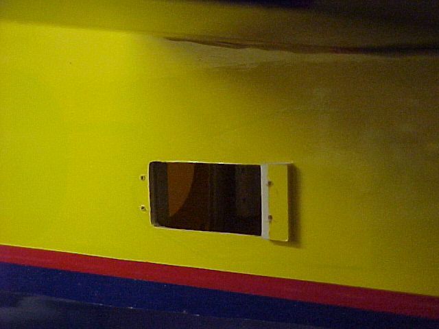 These pics show the approx placement, as well as the hole(s) after they were were cut and sanded out.......remember.....there are 2 sides to do...I recomend doing both sides at one time, and use a ruler, slid through the fusalage as a gauge for fine tuning the placement...much like lining up a stab to make sure its horizontal and true...