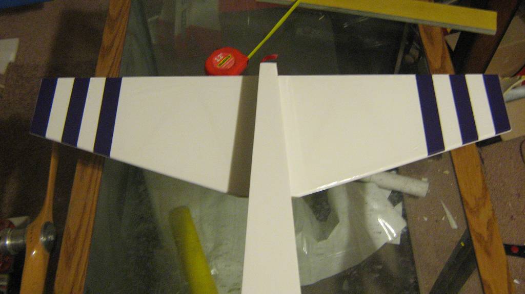 I meant to say that if a person is going to fly the "race track" then the bottom of the wing and stab is rarely seen. Only time a person would see it during that type of flying is on an overhead pass down the runway. So, if thats the type of flying a person is doing - then there's no point in striping the bottom of the wing or stabs. But thats not how I fly. I usually fly pretty aggressively and I need those stripes to keep myself oriented.