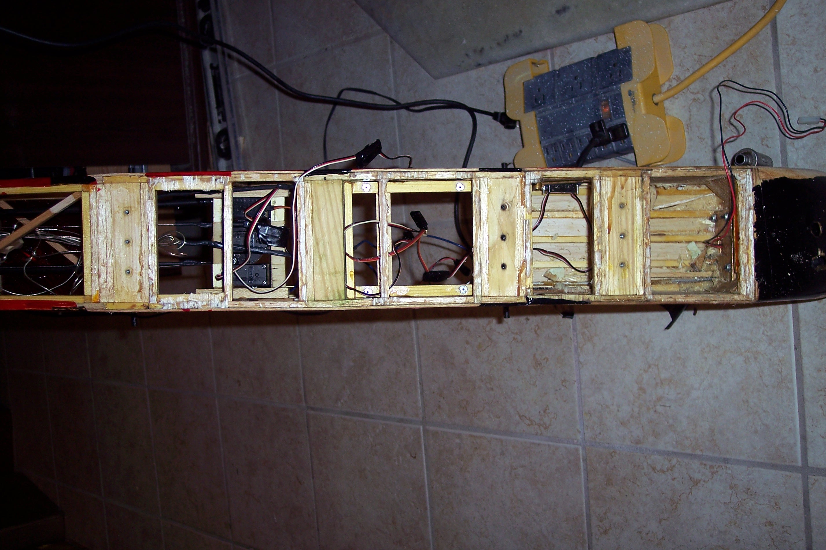 Another one of the reasons I used the header tank setup was the difficulty the cap of the fuel tank at an acceptable height relative to the motor. I've read this should be no more than half an inch below (and I know I'm not using the right term here) the fuel intake on the motor. The instructions used an 8oz tank and I of course wanted a lot more than that. The instructions (see link) show an 8 oz tank tucked right up against the stringers for the nose, its back end right up against the 1/4inch cross piece (step 64 picture 62). The space is really limited unless you cut out that cross piece like you do in step 61 picture 60 (they do this for sliding the tank in and out, with the header I didn't need to remove this).