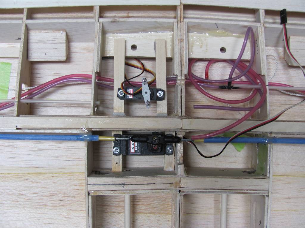 Well, hallelujah! It's about time. The pics are of my servo setup to actuate the cables to control the bomb drops on the wing pylons, I am using a micro servo. There's nothing like a fully loaded jug