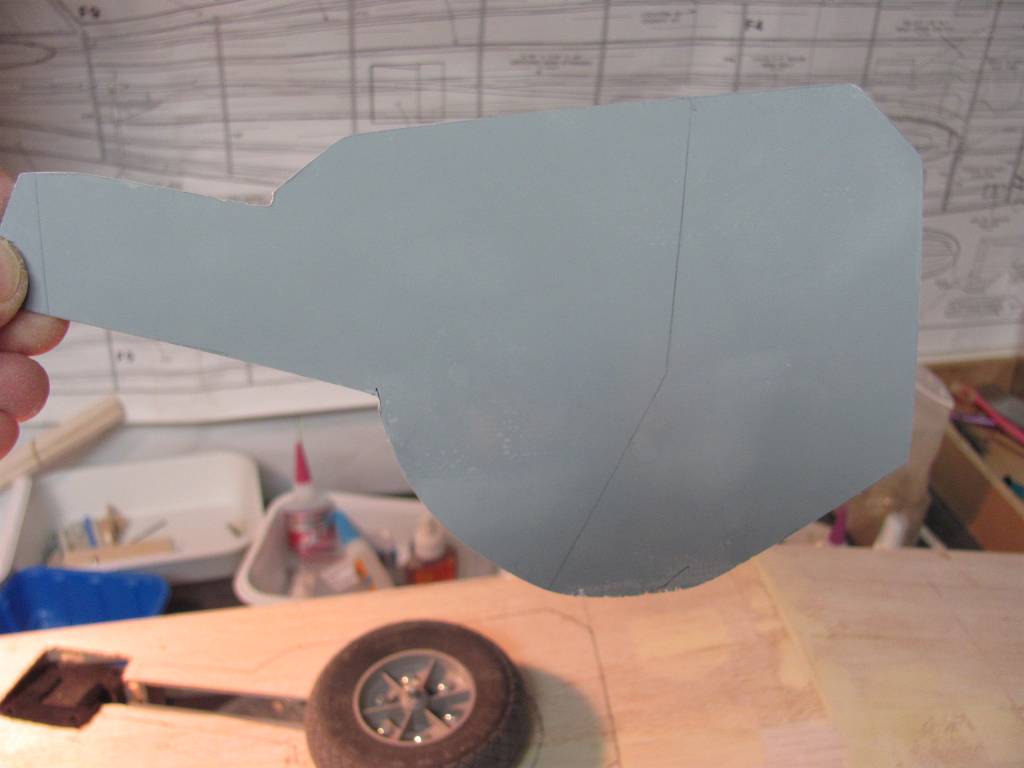 Back again with some more updates. I’ve been working on making gear doors all week, laying up fiberglass and fretting over some details. Not a lot to show for the week but I’ve had other things to do. I laid down some monokote on the wing in the gear well area and then put down four layers of 5oz cloth with epoxy resin to form the blank for the doors. I made a paper template of the wood gear door parts that come with the kit and then traced them on top of the fiberglass. I first heard of this process from the book RC finishing and detailing available from Model Airplane News, but it’s a pretty common technique describe here in the various threads. After laying them out I removed the fiberglass as one big piece by slowly prying it loose using a thin bladed plastic artist spatula. I will rough cut them out and then finish sanding them to the line, lay them on the wings again and cut out the balsa. I haven’t worked out how I will attach them yet or operate the inner doors. In the mean time I had to do something else because I needed to see some real progress so I spent a day working on my P-40 arf from Topflite. They really do a nice job for an arf.
