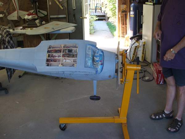 I install the control surfaces, too. I build fixtures to hold the wings. I mount the fuselage on an engine stand, allowing it to be rotated as I paint.
