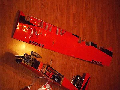 I blew apart the thick wooden down that makes up the leading edge. And the center piece that took a big hit only needs some balsa filler to reshape. It was strengthened with fiberglass