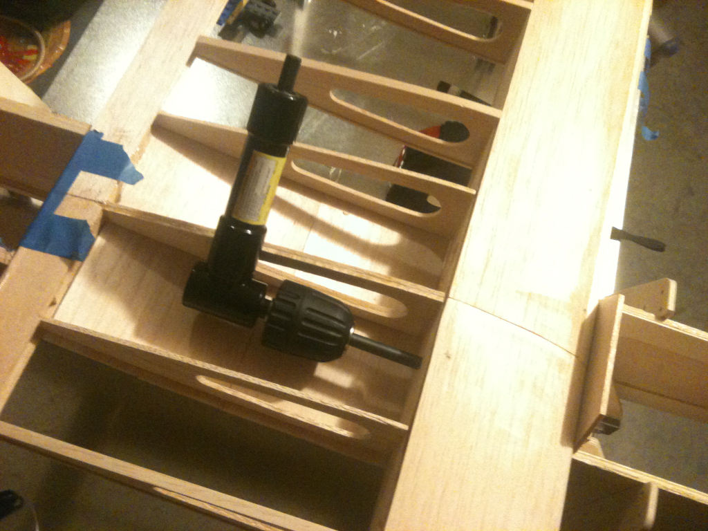 I've been waiting on a couple drill bits to arrive in the mail so I can drill out the wing dowels.