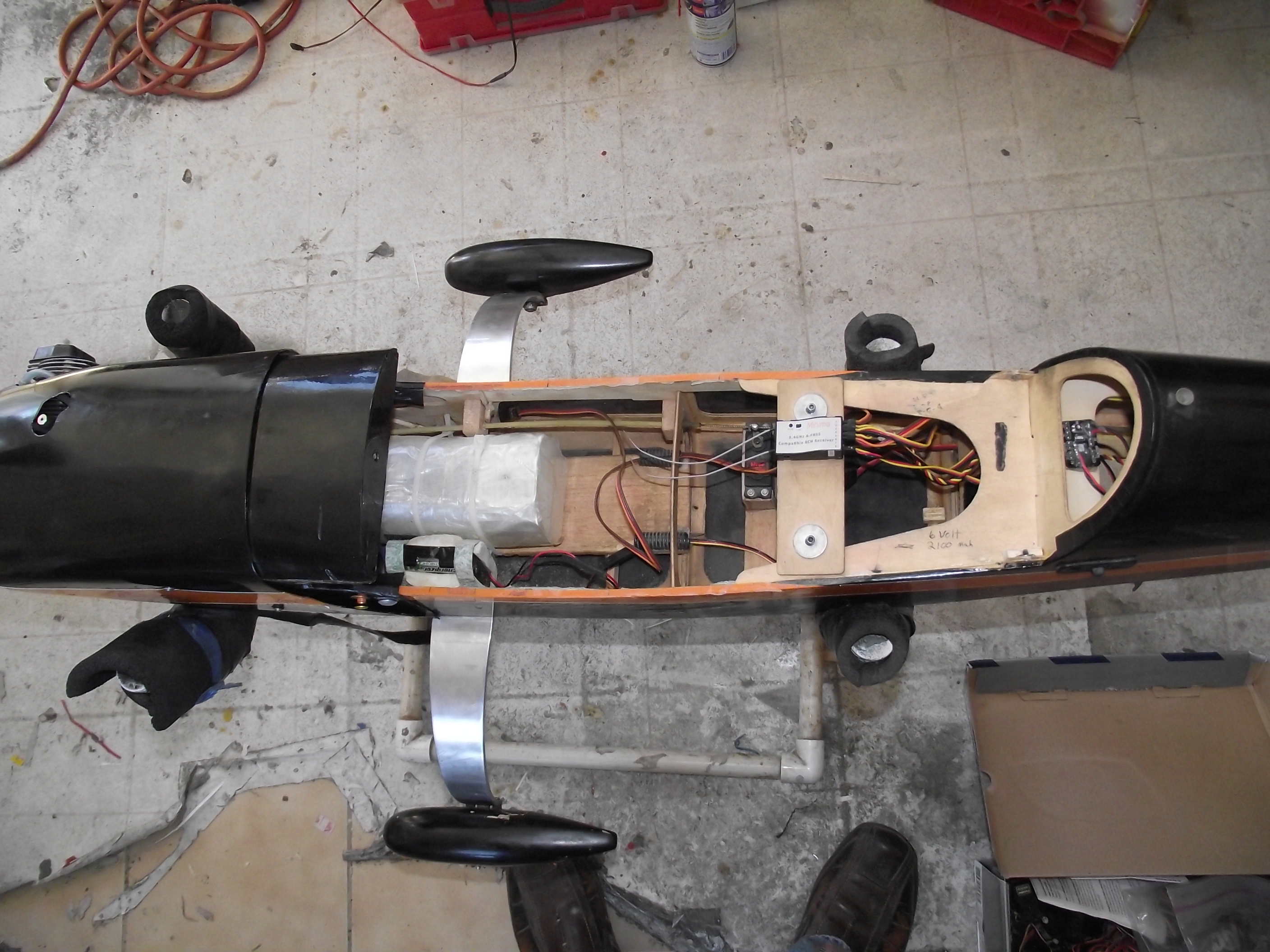 Post #4 shows the fuel tank wrapped in foam. It tucks into the motor box.
