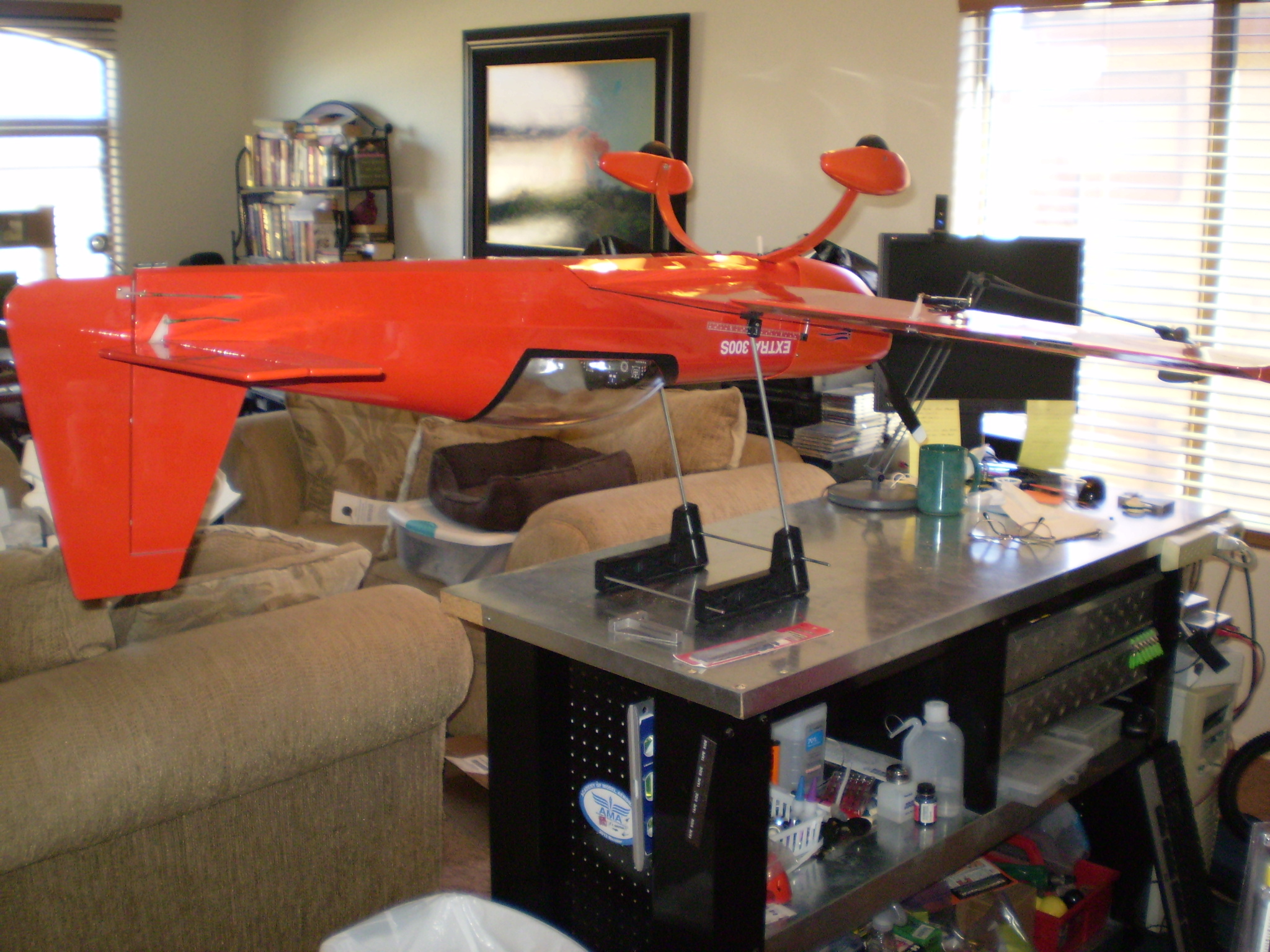It's a Great Planes Extra 300S kit and is fully covered now. I usually go with the recommended engine but decided to go with the bigger engine this time but didn't realize that the plane would be this nose heavy. The recommended engines for the kit .61 to .91 2 stroke and .91 to 1.20 4 stroke. I'm using the OS FS-120S III 4 stroke. All of the servos are mounted per the build plans. I could move the servos towards the tail but would only gain about an inch or two further from the engine. I don't know if its worth it. I'll take some pic's to provide more detail. I've built planes for many years but had a brain fart on this one. Thanks for the feedback.
