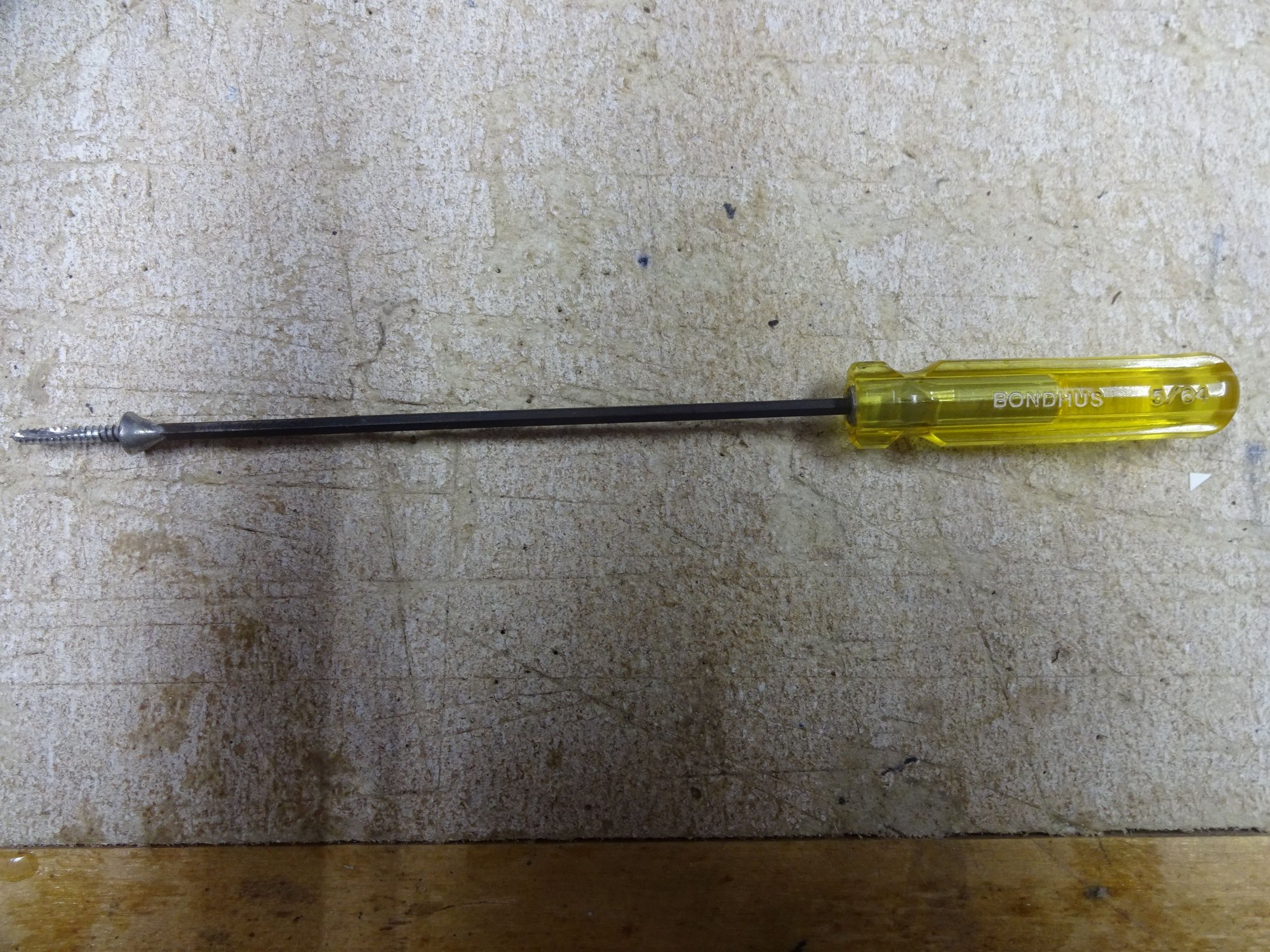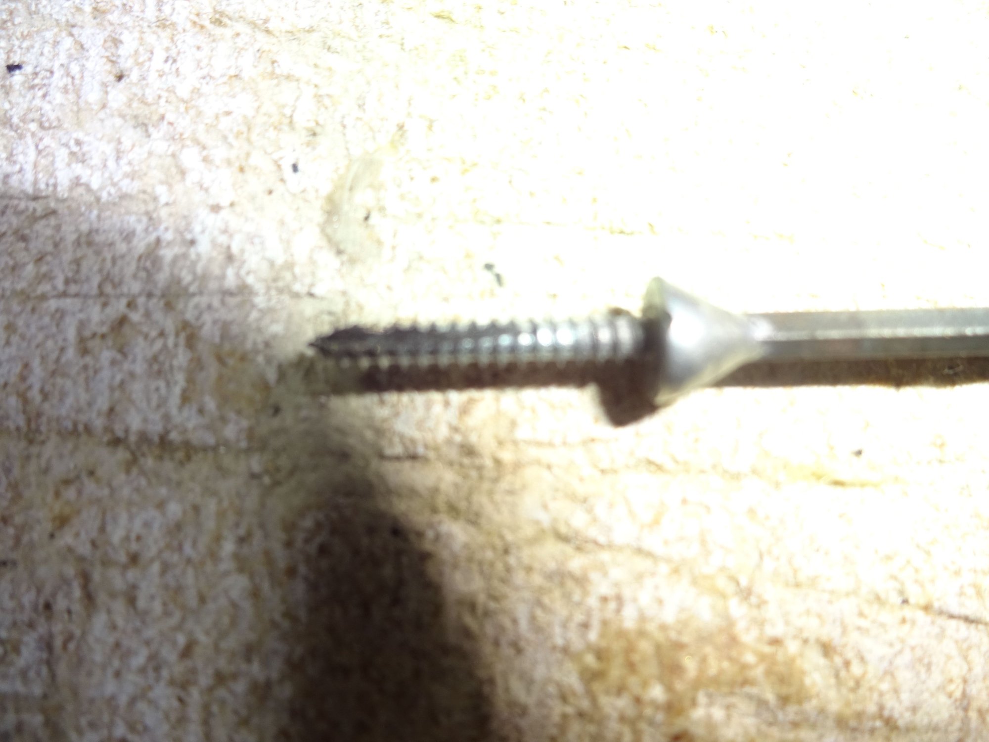 I soldered one of those servo screws onto a ball driver, then gut a shallow groove along the threads with a Dremel cutoff wheel (difficult to see in my blurry close-up picture). I had used this for many years without that groove, but after splitting more wood during my last build, decided that I needed to actually kind of tap the threads, instead of just pressing them into the wood, like a bare screw does. I use this technique in my workshop to chase damaged screw or bolt hole threads. Sometimes that works better than running a tap through the hole, plus sometimes I don't happen to have the exact tap that I need. Cut a groove along the threads, and that lets chips and material removed come out, plus the edges of the groove do some cutting in the material. That's a mechanic / machinist trick.
