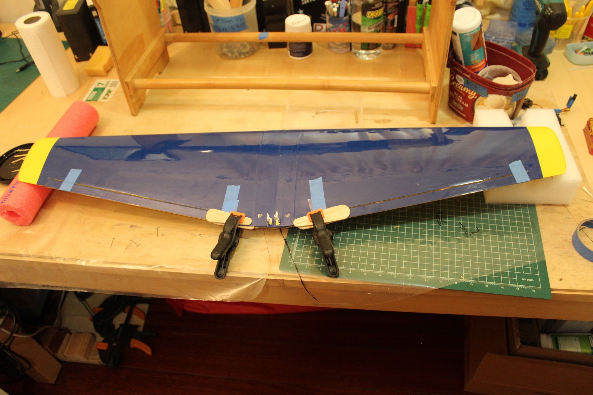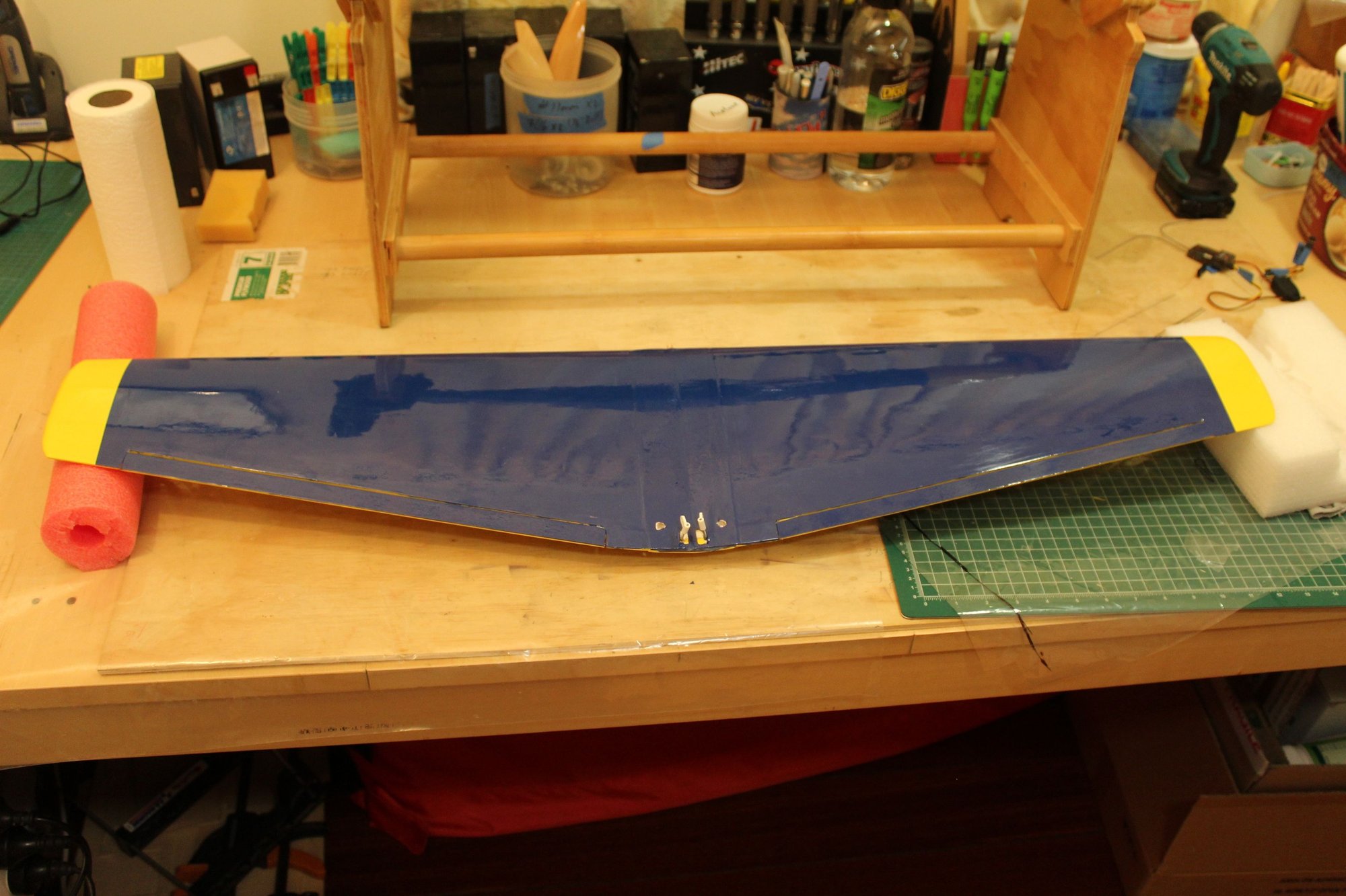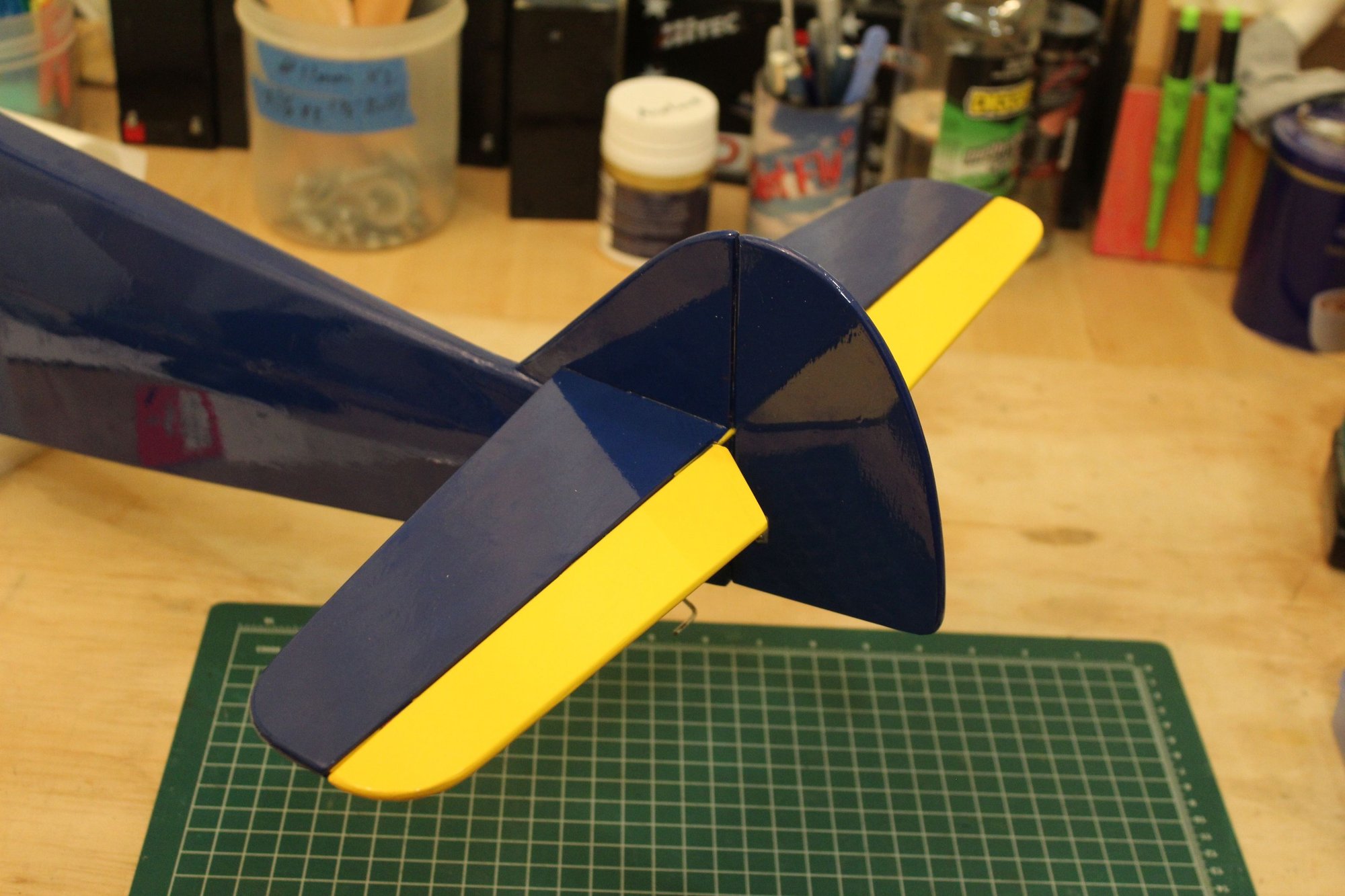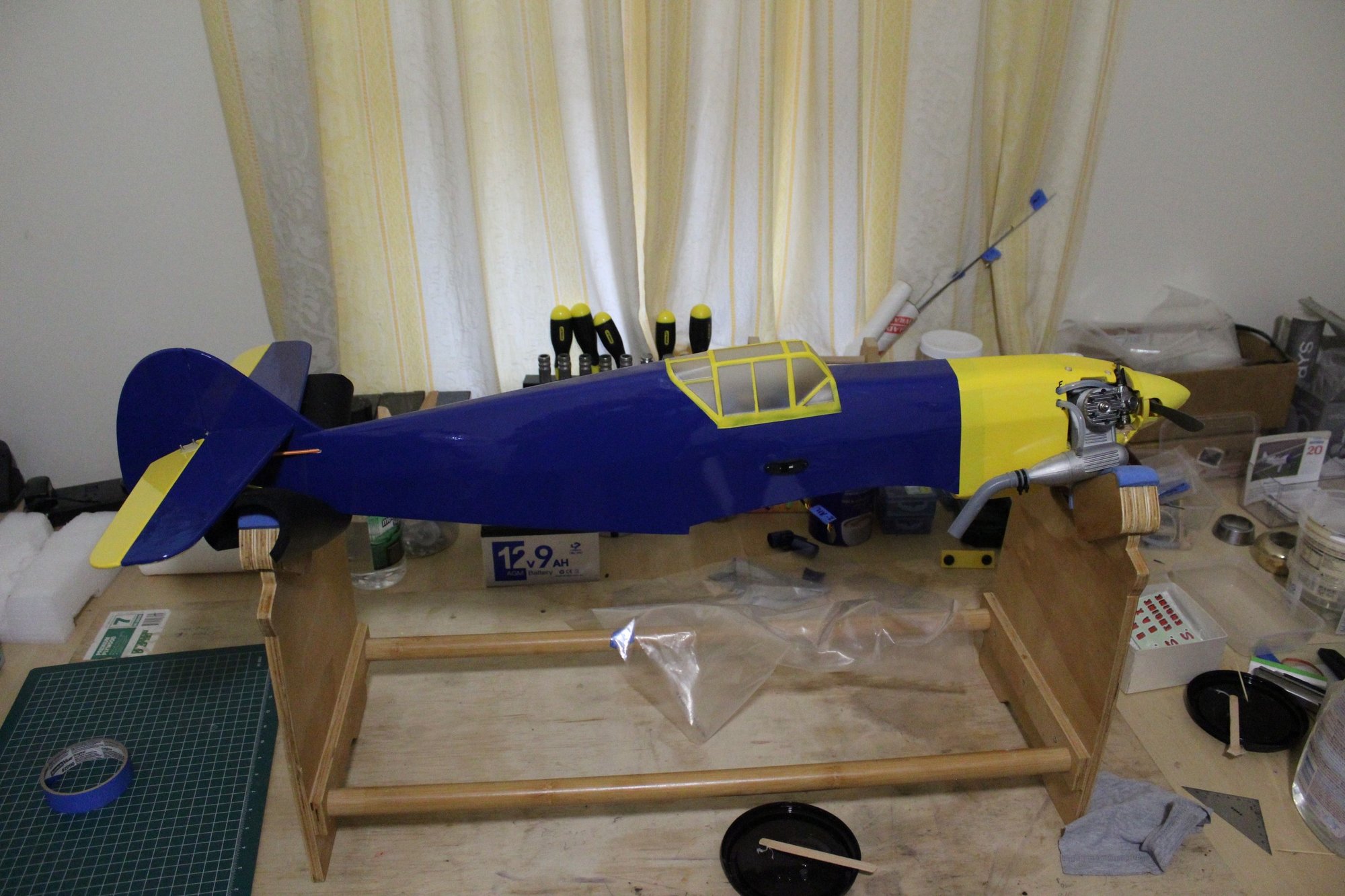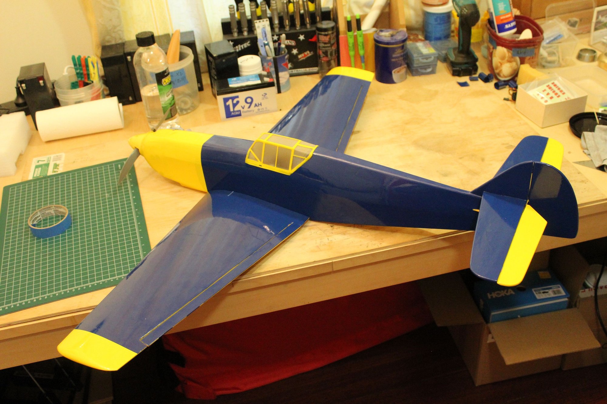 It was built from a short kit from Lazerworks. It was a Tom Stryker design published in Model Airplane News in May 1992. Apparently there was also a kit from Progressive Miniature Aviation. It was glassed with lightweight fiberglass cloth and Kwik Poly and then painted with Top flite Lusterkote. Kwik Poly was a very low viscosity polyester resin. It only had a bout a 3 minute pot life but it would wick into the cloth very easily and spread very thinly without needing to squeegee or blot the resin. it was tough and very lightweight. The plastic canopy wasn't available at the time so I just built it up out of balsa. Sadly the guys who ran Laserworks and Kwik Poly both retired some years ago. They were both one man operations with no one to carry on. Lustercoat is no longer available. On the upside I see people using water base poly urethane over 3/4 oz fiberglass with good results and the plans are still available on Outerzone.