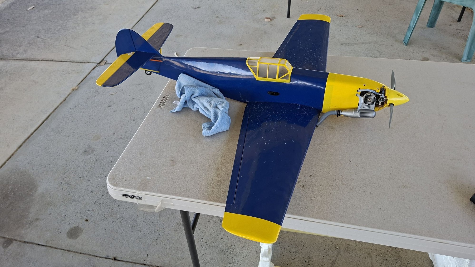 At the club, when I took the ME-109 for the maiden flight, the club member that assisted me with the hand-launch was very amused as he only ever hand-launched electric models. He was stunned by how well it flew. I gave him a rug to clean the oil from his hands ; )