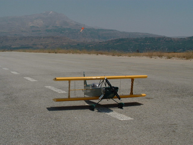 Powered by an OS 46FX which hauls it round OK. Had one before with a Saito 65 which also flew OK until I had a deadstick in a very bad position.